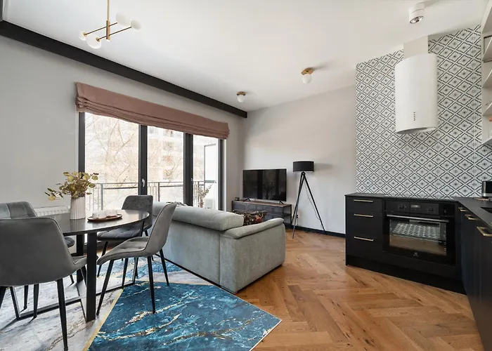 Die Art Deco Mokotow Suites - Parking & Gym By Downtown Apartments Warschau in Warschau befindet sich ca. 15 Autominuten vom Grzybowski-Platz und ungefähr 7 Kilometer von der Neuen Welt entfernt. Erleben Sie eine Vielzahl spannender Sportaktivitäten, vor allem Wandern und Radfahren.